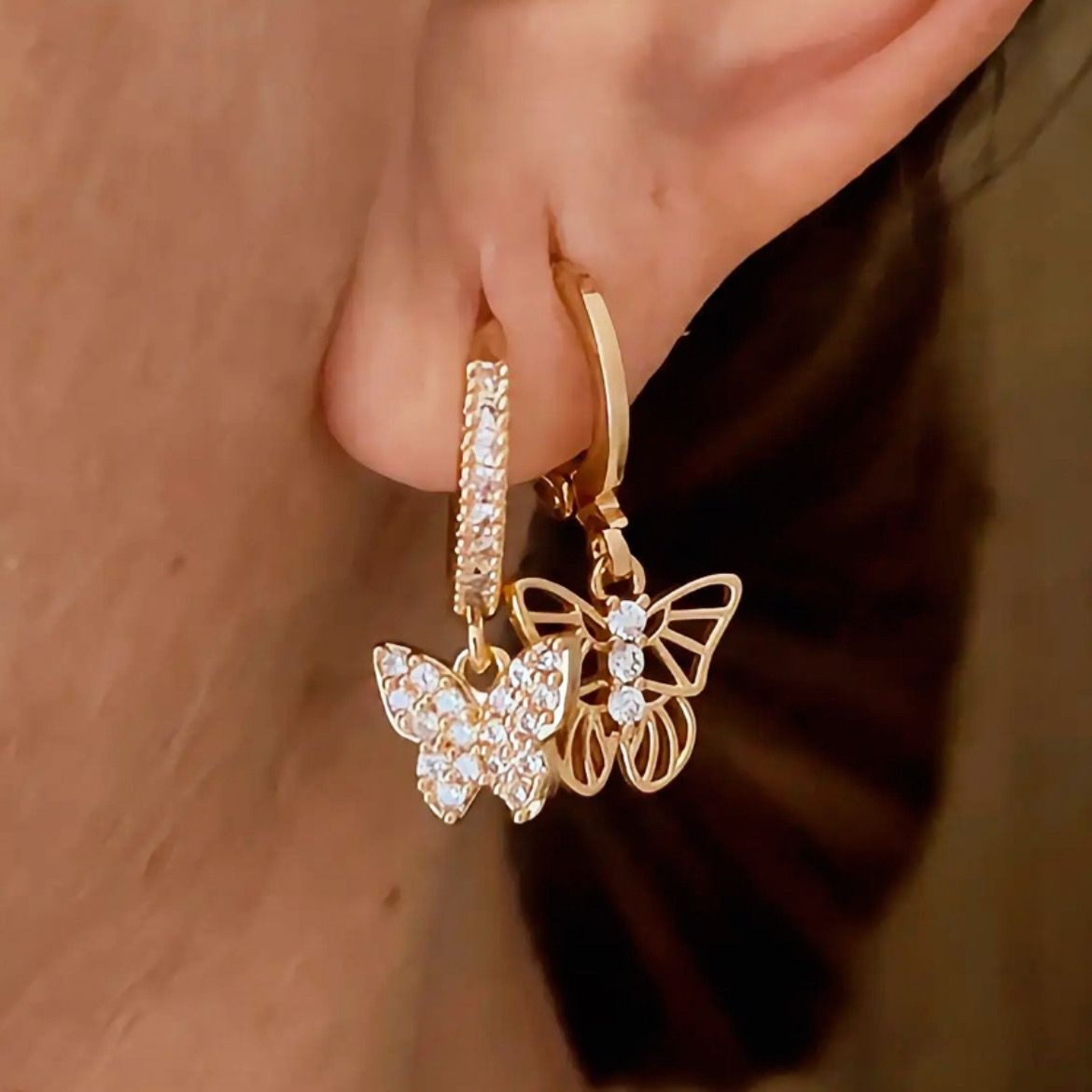 Brinco Mix Duplo Argolinha Borboleta Banhado a Ouro 18k. O Brinco Mix Duplo Argolinha Borboleta Banhado a Ouro 18k é uma joia delicada e encantadora, pensada para quem ama detalhes femininos com um toque de leveza e sofisticação. O conjunto combina duas argolinhas harmoniosas que se complementam perfeitamente, criando um visual elegante, moderno e cheio de charme. Uma das peças se destaca pelo delicado pingente de borboleta, símbolo de liberdade, transformação e beleza, que adiciona movimento suave e um toque lúdico ao design. A outra argolinha equilibra o conjunto com linhas limpas e acabamento polido, garantindo um visual refinado e versátil. O banho em ouro 18k confere brilho intenso, tonalidade dourada uniforme e maior durabilidade, elevando a joia com um acabamento impecável. Leves e confortáveis, os brincos são ideais para uso diário, mas também perfeitos para compor produções mais elaboradas, trazendo delicadeza e personalidade ao look. O Mix Duplo Borboleta é uma escolha perfeita para mulheres que apreciam joias delicadas, simbólicas e cheias de estilo, capazes de iluminar qualquer produção com sutileza e elegância.