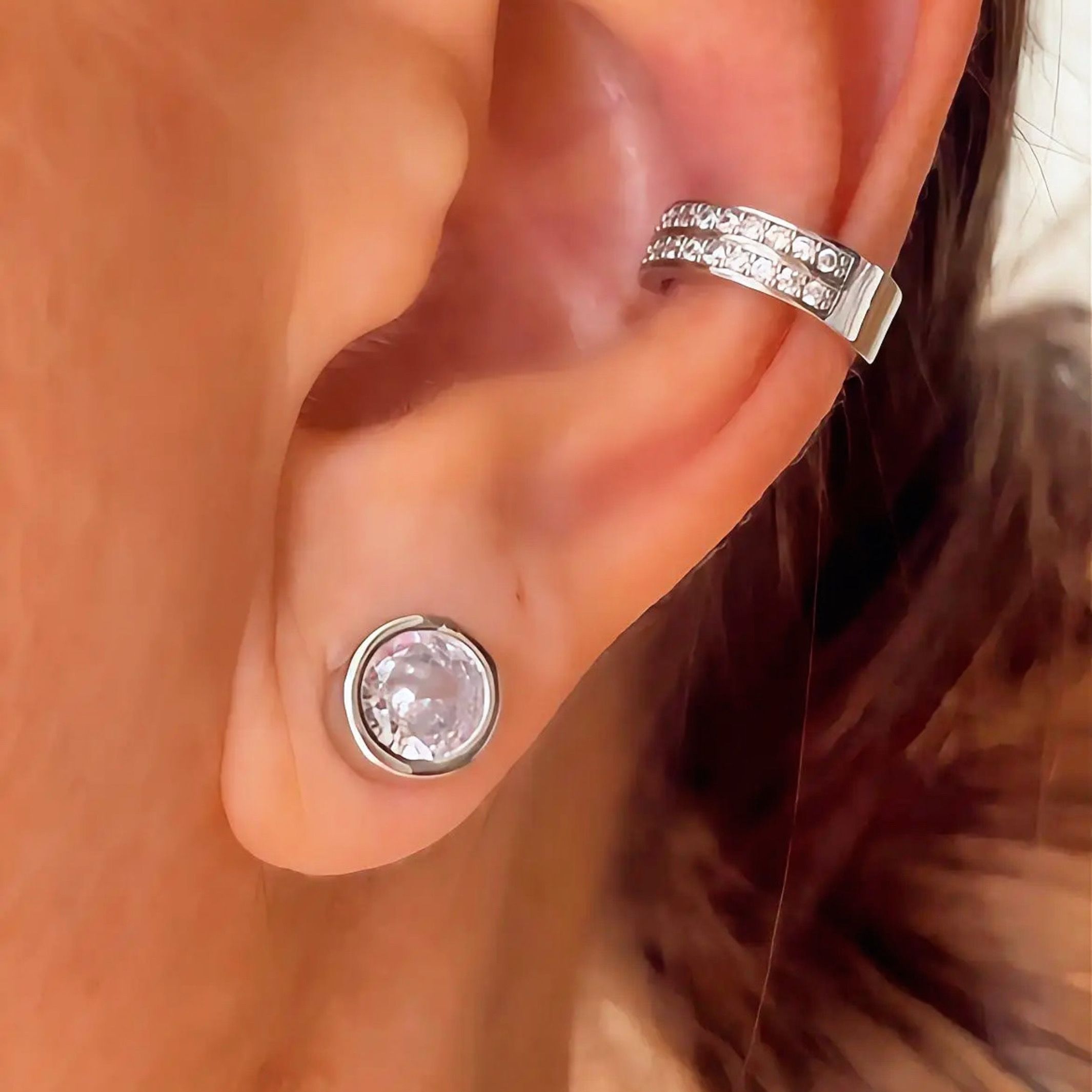 Brinco Ponto de Luz Maxi Ródio Branco. Esse brinco é simplesmente incrível, é um brinco ponto de Luz clássico, mas com um toque de modernidade, isso porque a base dele é mais alta e deixa em evidência o cristal, a borda em ródio dá um toque especial na peça. É inspirado na alta joalheria, use e apaixone-se! Semijoia com verniz especial que garante brilho e durabilidade. Garantia de 6 meses quanto ao banho, desenvolvido com tecnologia hipoalergênica.