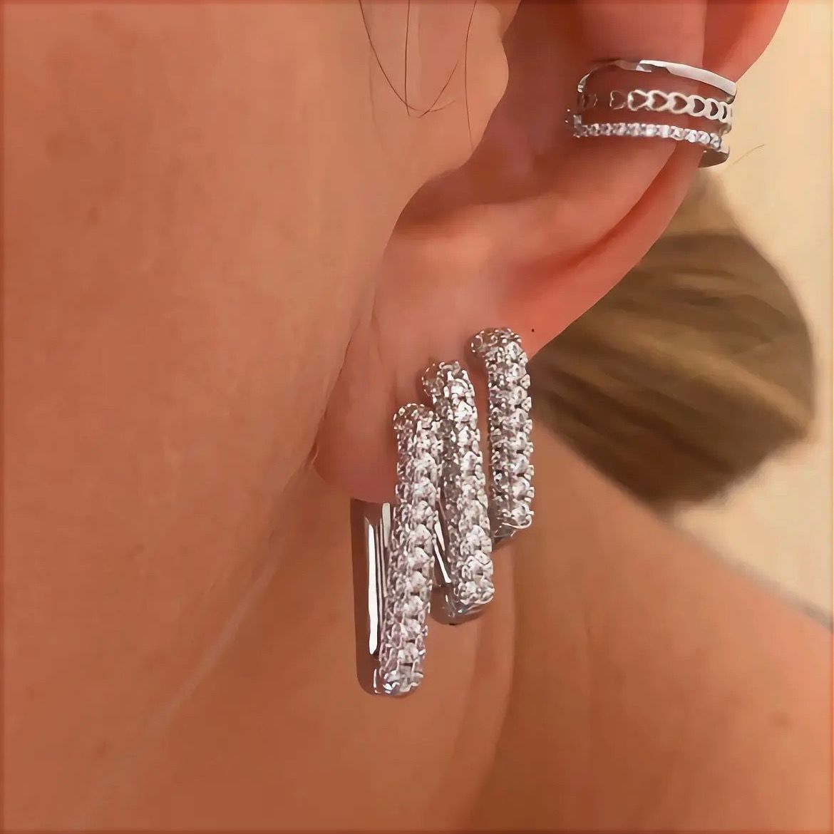 Brinco Trio Cravejado Retangular Elevé Ródio Branco. Brinco Trio Cravejado Retangular Elevé Ródio Branco é um conjunto que une sofisticação contemporânea e design elegante em uma proposta versátil e refinada. Composto por três brincos em formato retangular, o trio apresenta variações sutis de tamanho que permitem composições harmoniosas, criando um visual moderno, equilibrado e cheio de personalidade. Cada peça é delicadamente cravejada com cristais de alto brilho, alinhados de forma precisa para proporcionar um efeito luminoso intenso e sofisticado. O formato retangular confere um toque arquitetônico e atual à joia, valorizando o design com linhas limpas e elegantes. O banho ródio garante acabamento impecável, tonalidade dourada uniforme e maior durabilidade, elevando a qualidade e o requinte do conjunto. Versátil e atemporal, o Trio Elevé pode ser usado em conjunto para um visual marcante e elegante ou de forma individual, adaptando-se com facilidade a diferentes estilos e ocasiões. Ideal para mulheres que apreciam joias com presença, brilho na medida certa e um design que traduz elegância, modernidade e sofisticação em cada detalhe.