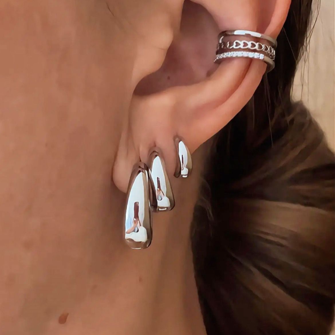 Brinco Trio de argolas Bold Tryce Class Ródio Branco. Imponente na medida certa, o Trio de Argolas Bold Tryce Class traduz a elegância contemporânea em um design marcante e sofisticado. Com volumes harmoniosos e acabamento espelhado, cada argola foi pensada para valorizar o brilho do ródio e criar um efeito visual poderoso, que eleva qualquer produção com personalidade e classe. Versátil e atemporal, o trio permite composições modernas — do uso individual, para um visual minimal chic, ao mix completo, que imprime presença e sofisticação imediata. Uma joia que reflete força, estilo e refinamento em cada detalhe, ideal para mulheres que apreciam design autoral e impacto visual com elegância.