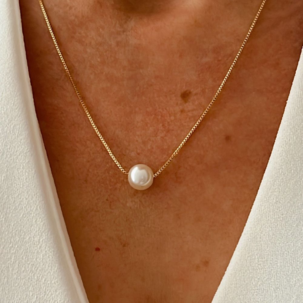 Colar Pérola Banhado a Ouro 18k. Clássico e atemporal, o Colar Pérola Banhado a Ouro 18K é a expressão máxima da elegância discreta. Sua pérola central realça a delicadeza e o charme feminino, enquanto o banho em Ouro 18K confere um toque sofisticado e refinado. Perfeito para ocasiões especiais ou para trazer sofisticação ao dia a dia, este colar é uma joia que nunca sai de moda; símbolo de beleza, pureza e bom gosto.